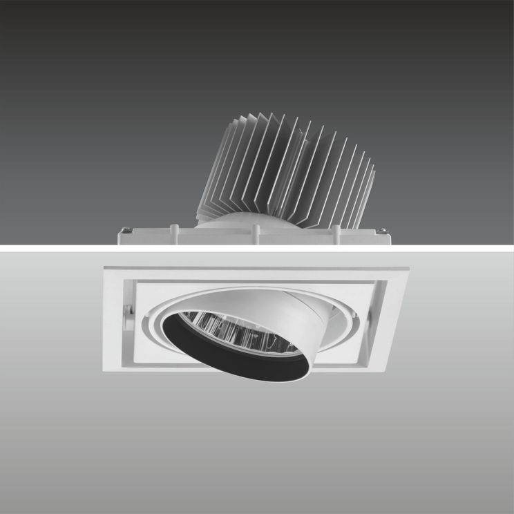 Burton is an innovation in new lighting technology with an efficient balance between heat and light. It produces an IR/UV free light with an advantage in power consumption. Symmetrical gimbaled suspension allows each spotlight to be tilted through 40Deg along both axes. The assembly uses black/anodised extruded aluminium heat-sink body and a vacuum metalised reflector.