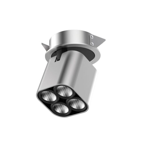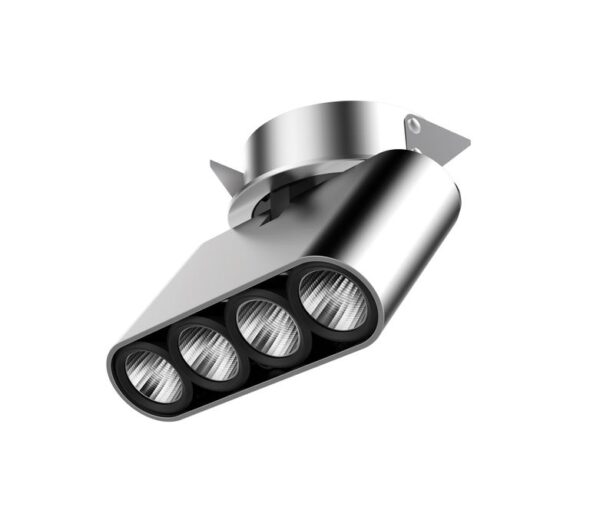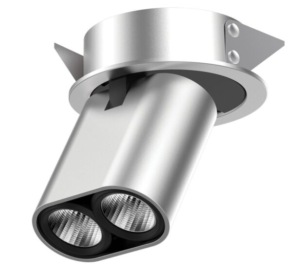 Corrs D – Introducing tilting and turning, semi-recessed spotlights, with wide, medium, and narrow beams. Corrs offers maximum luminosity with a defined beam and no spill. The advanced geometry of new optics and highly reflective aluminium coating surface creates a controlled and precise beam angle with maximum efficiency. These spotlights can be turned through and swivelled to achieve the desired pitch and luminosity